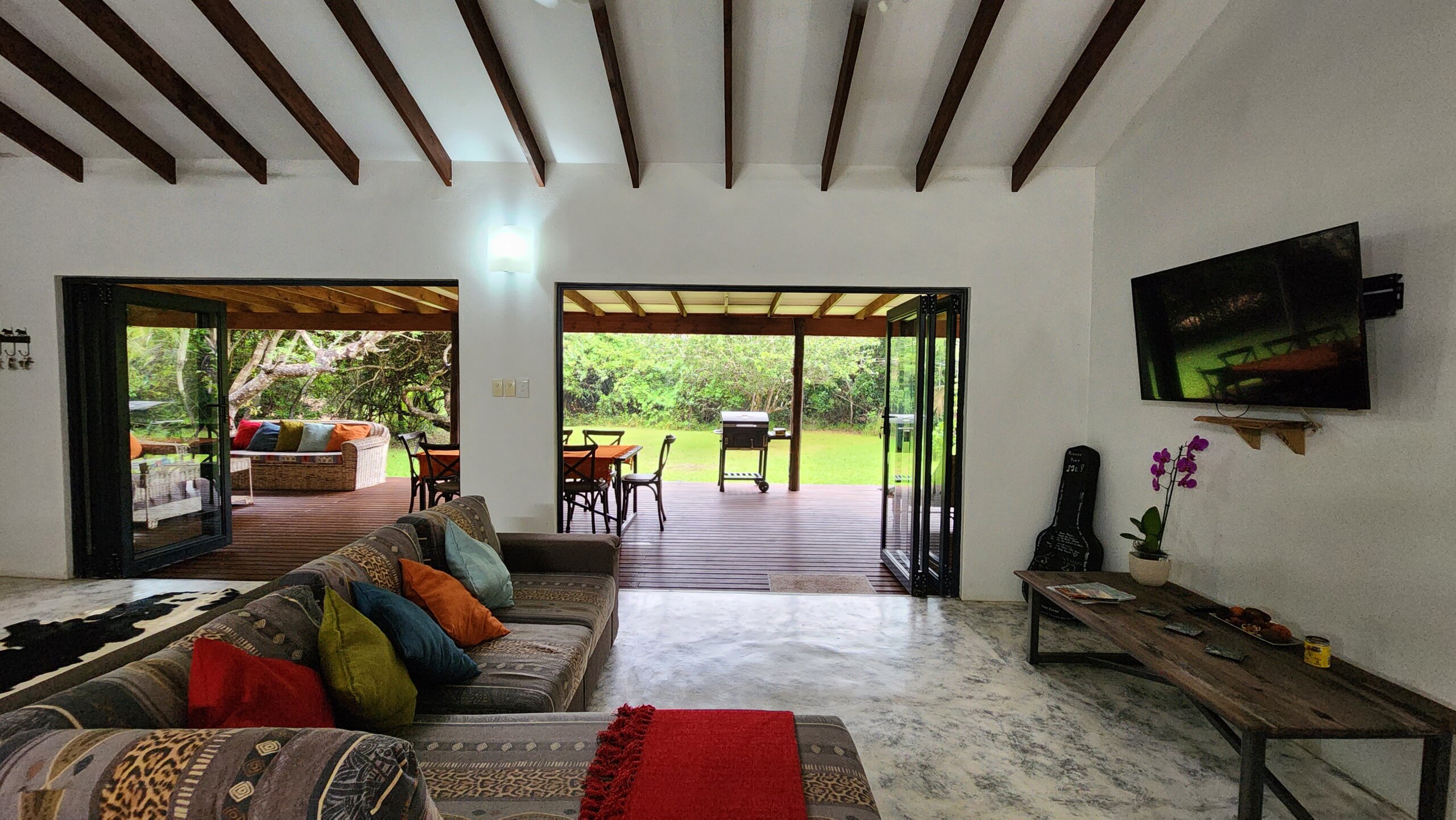Tucked away in a private, secluded setting with no neighbouring houses in sight, this beautifully designed house for sale in Ponta do Ouro offers the perfect blend of comfort, independence, and natural beauty. Positioned to capture stunning sunset views, the property is thoughtfully shaded — making it ideal for relaxed sundowners on the expansive deck, in one of Ponta do Ouro’s most impressive eco-estates.